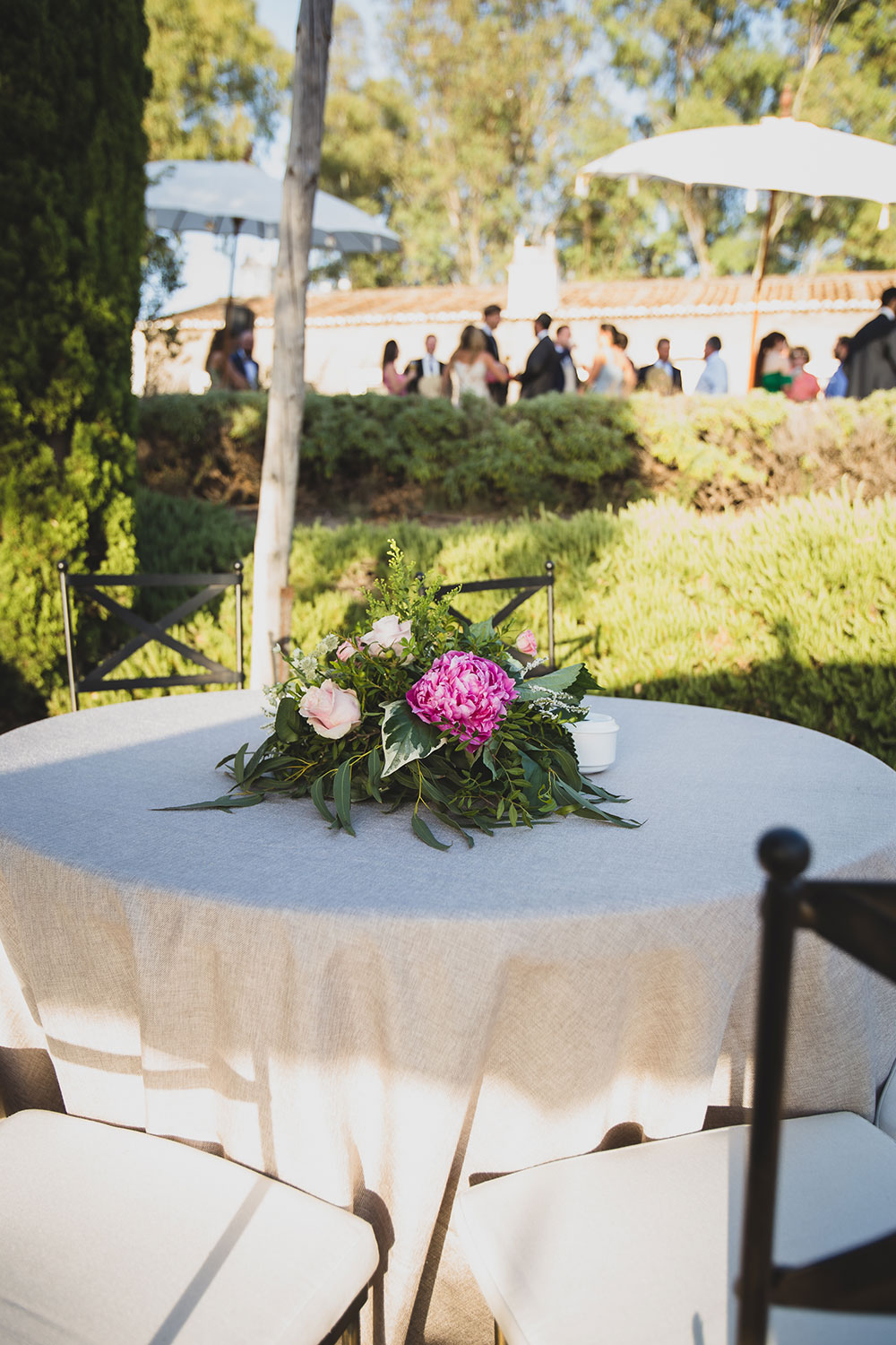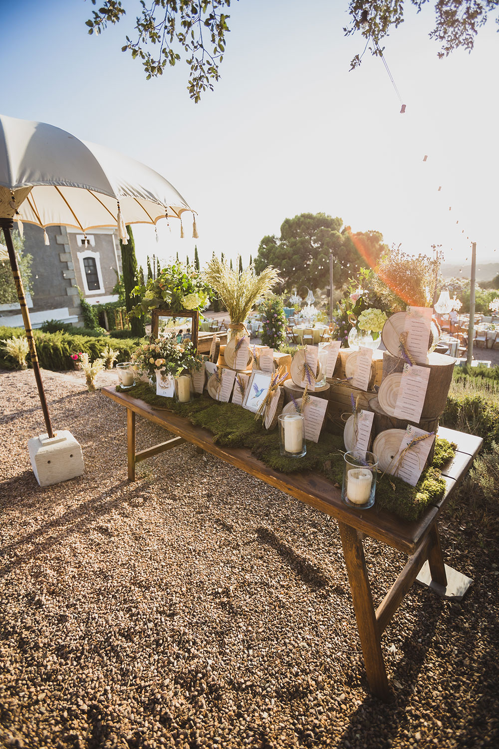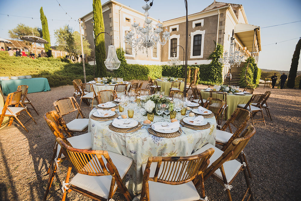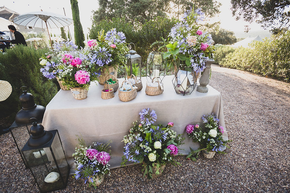 Pusimos agua para la salida, pai-pai y seguidamente acompañamos a los invitados a los autobuses para trasladarse a la finca: el Palacio Santa Cristina fue el lugar donde el catering Ciboulette nos estaba esperando con todo tipo de detalles, como mesa de agua, mojitos ….etc.