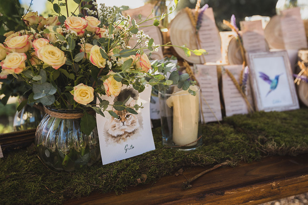 La novia además súper detallista y sin escatimar en nada, estuvo pendiente de cada detalle para que todo saliera como ella había soñado. Quería una boda romántica y su idea era la de un bosque encantado, así que nos pusimos a ello con llenas de ilusión. Fue una boda integral y nos ocupamos de la coordinación de toda la boda